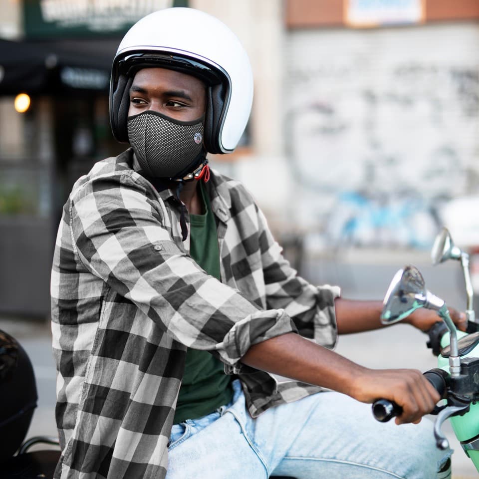 A FFP2/N95 anti-pollution mask is the essential respiratory protection in an urban environment to filter invisible airborn particles we breathe while commuting. A mask helps to breathe a purer and an healthier air. A bicycle anti-pollution mask or a motorcycle anti-pollution mask is the essential accessory to protect cyclists and bikers from road traffic pollution but also from dust and pollen or from cold in winter.